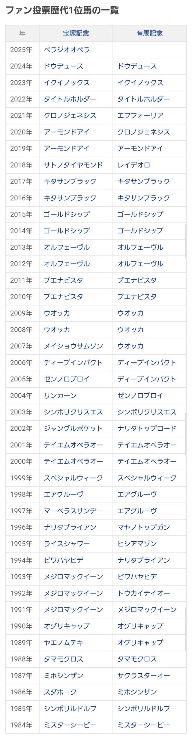 しかも7歳まで現役続行して同年秋古馬三冠リーチかけてる三冠馬抑えての1位